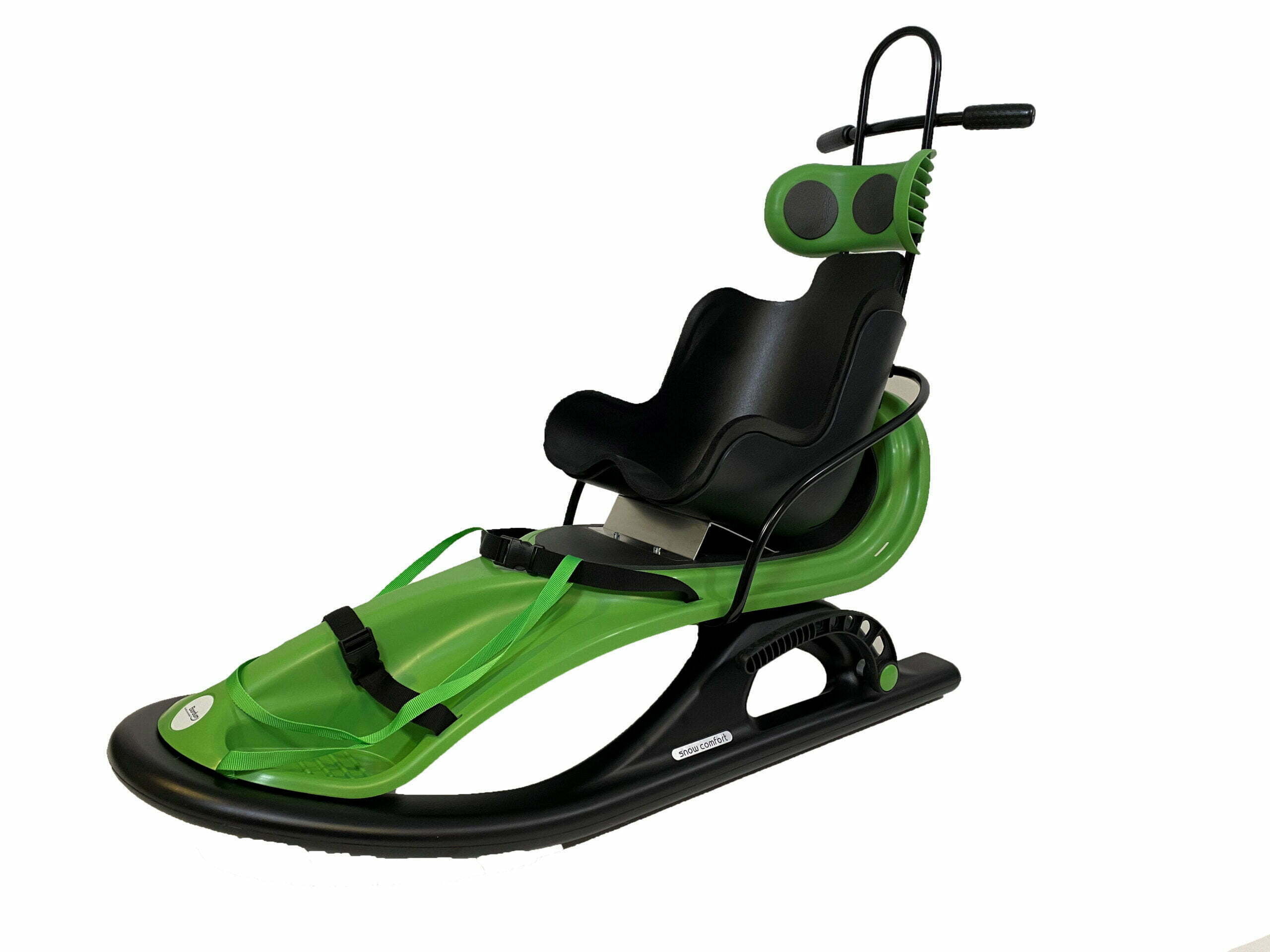 Sätet till kälken levereras i flera storlekar, från barn till vuxen, med en max användarvikt på 100 kg.