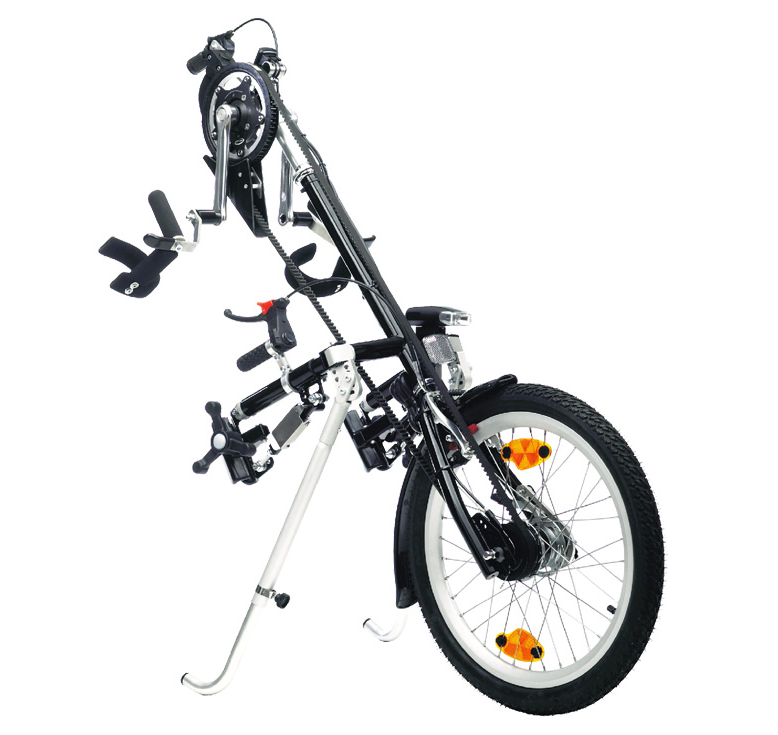 City Max från Stricker är en cykelfront för dig som önskar vara aktiv i din manuella rullstol. Cykelfronten passar vuxna och ungdommar. Den är utrustad med 24 växlar och kan levereras i tetramodell vid behov.
