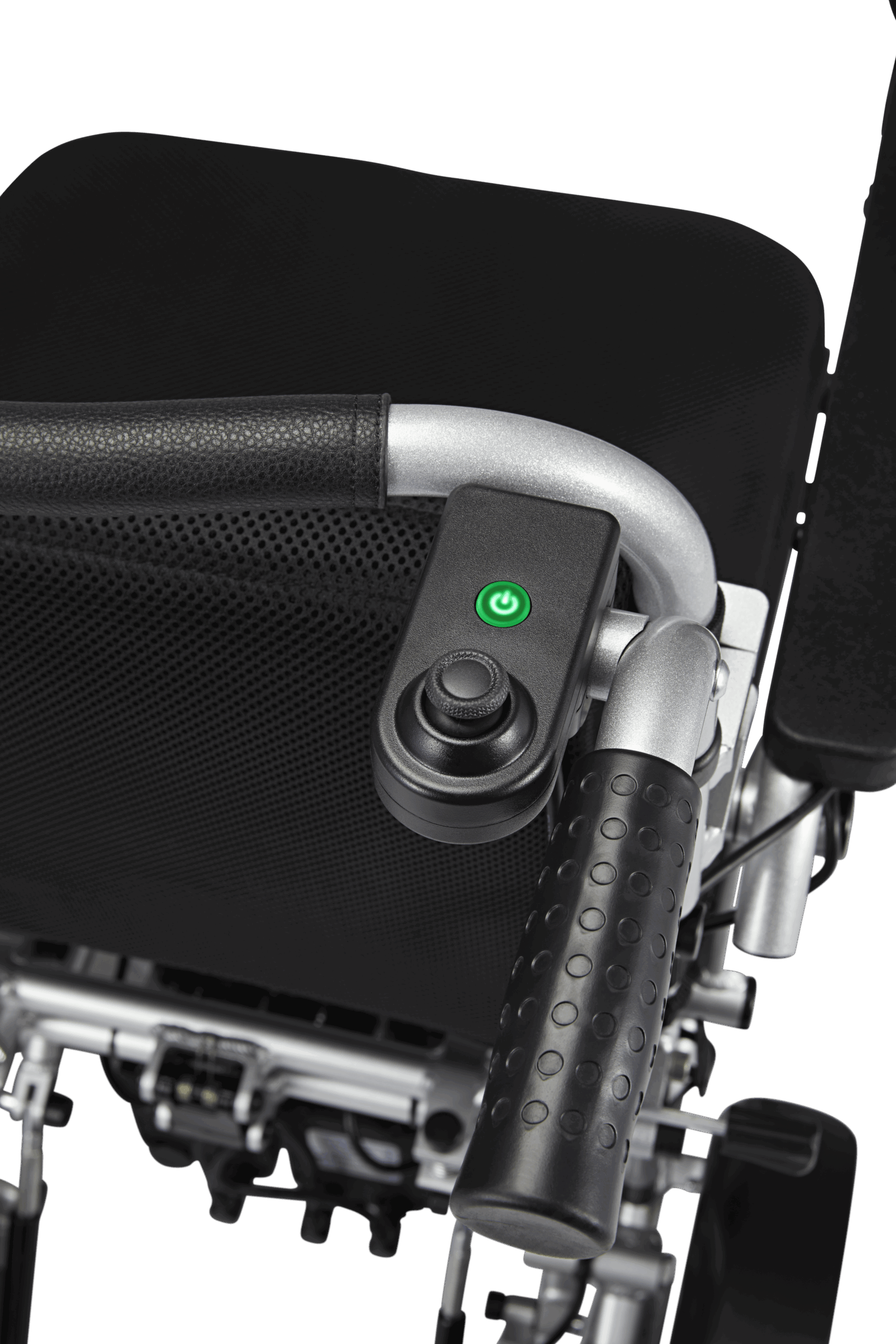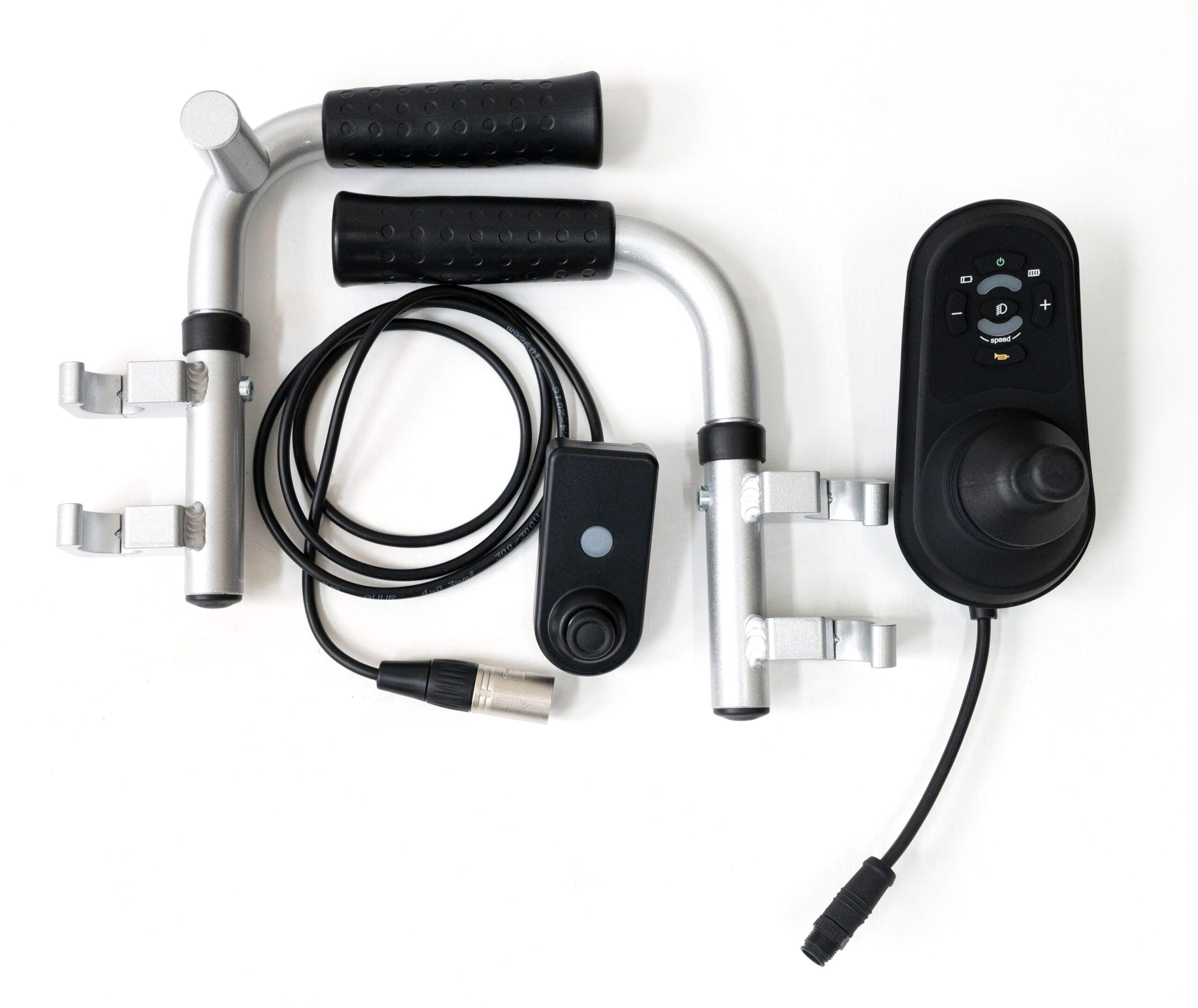 Eloflex Modell A är ett användarvänligt ledsagarstyrningssystem med hög precision, speciellt utvecklat för Eloflex elektriska rullstolar. Med ledsagarstyrningen aktiverad kan personen bakom stolen enkelt och tryggt styra rörelserna. Oavsett om det är en vän, en familjemedlem eller en vårdare, ger den bakmonterade armen med joystick, handtag och tumstyrspakett en intuitiv och precis styrning. De två handtagen ger naturlig kontroll över stolen, medan tumstyrspaken säkerställer exakt navigering.