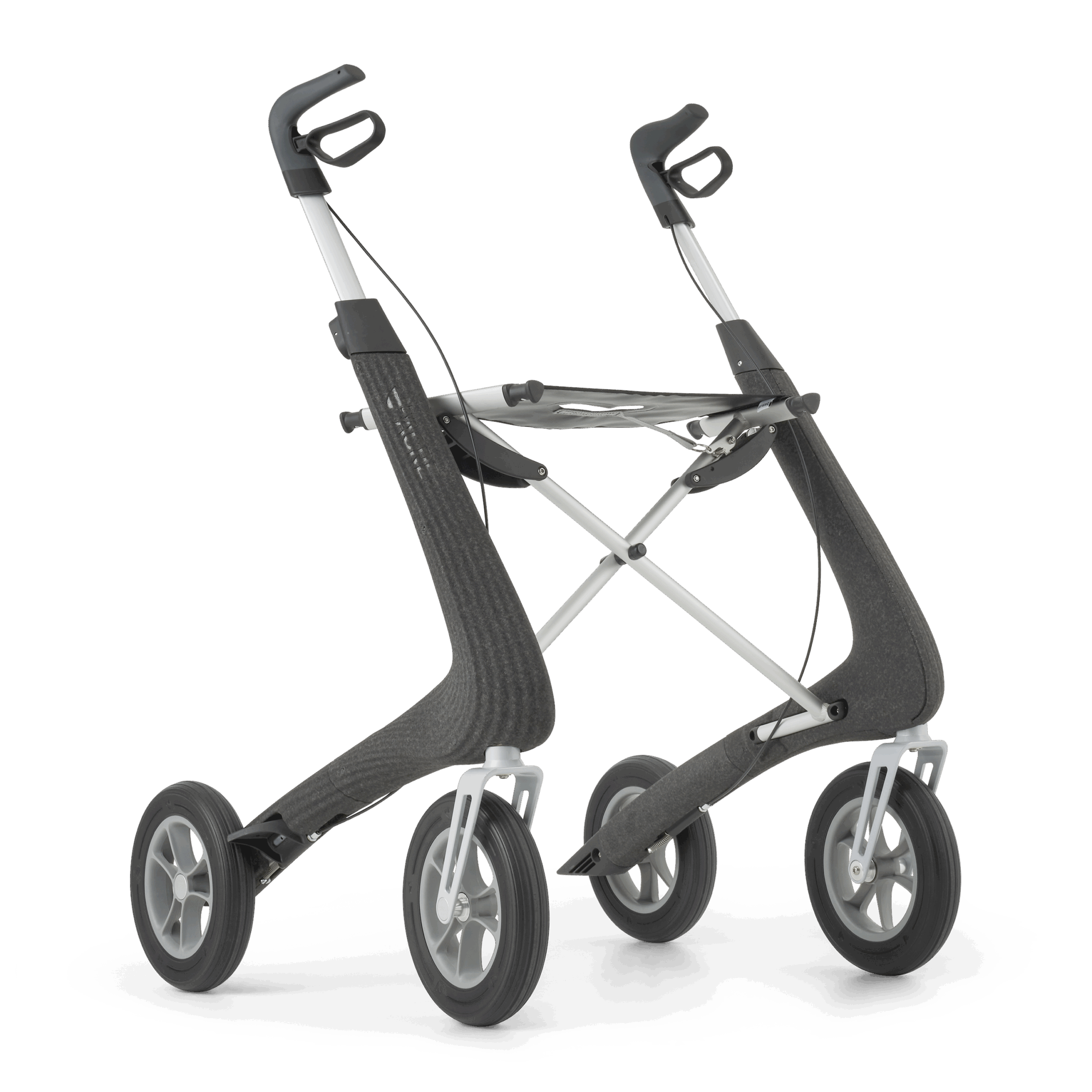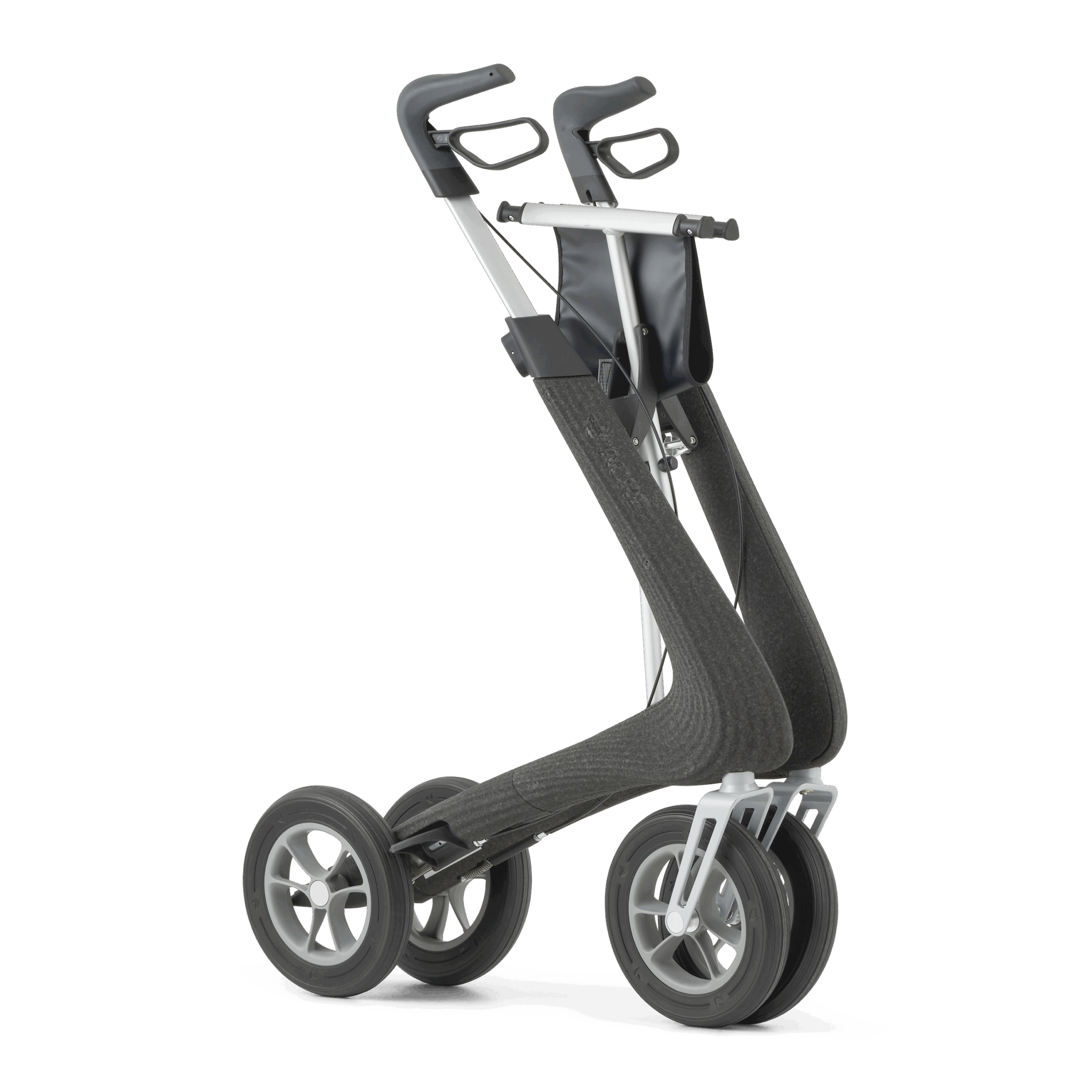Den innovativa ramen kombinerar en stark inre aluminiumstruktur med EPP-skum – ett hållbart och miljövänligt material som gör rollatorn både stöttålig och reptålig. Den pilformade designen minskar vertikala stötar från marken upp till handtagen, vilket avlastar händer och armar och ger en behagligare gångupplevelse.