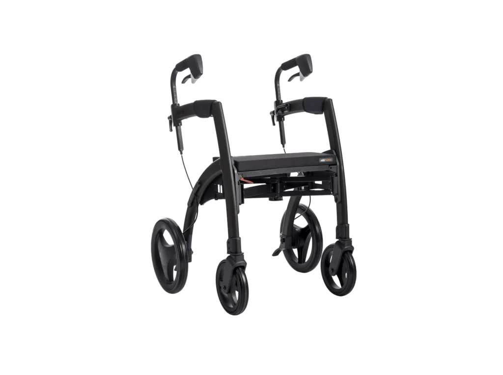 Rollator: Om du vill ha en lösning som ger dig stöd under gång, men samtidigt flexibiliteten att röra dig mer självständigt, är en rollator som Rollz en utmärkt lösning. Rollz-rollatorer är snygga, användarvänliga och kan enkelt omvandlas till en transportstol för extra avlastning. De är perfekta för kortare promenader eller när du behöver en kombinerad lösning för stöd och rörlighet.
